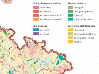 Mapa Postindustriální krajiny Česka poskytuje přehled o jejich rozmístění na státním území