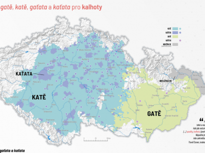 Mapová kompozice Pomnožná jména v nářečích poskytuje přehled o územní distribuci dialektismů užívaných výhradně nebo převážně v množném čísle. Jejich výběr se řídil tím, aby reprezentovaly co možná nejvíce existujících deklinačních, příp. též slovotvorných typů. Výzkum doložil nářeční jevy, jako jsou kolísání gramatického rodu a čísla nebo přechody mezi morfologickými typy. První sada map je zaměřena na vybrané výrazy pro kalhoty, příp. spodky. Jednotlivé mapy prezentují jednak přechody mezi femininy a neutry (používání výrazů gatě, katě a gaťata, kaťata, kalhoty, nebo spodky), jednak územní distribuci jednotlivých slovotvorných typů mezi výrazy vzniklými univerbizací spojení buď plátěné kalhoty, nebo kožené kalhoty. Druhá sada map je zaměřena na názvy vybraných nemocí – tuberkulózy, spalniček a neštovic. Text v samotné mapě i v doprovodné brožuře má metodický a vysvětlující charakter. Použitý postup mapování vybraných nářečních jevů je svým přístupem unikátní, neboť pro výpočty byl na základě spolupráce dialektologů a geoinformatiků vytvořen speciální softwarový nástroj PROMAP. Mapy jsou názornou prezentací vybraných pomnožných jmen v českých nářečích.